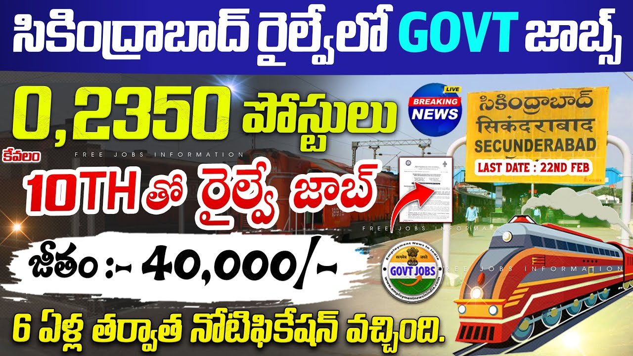 34 thoughts on “🚨 10th అర్హత తో సికింద్రాబాద్ రైల్వే బంపర్ నోటిఫికేషన్ || RRB Recruitment 2025 || Railway Job Search”
