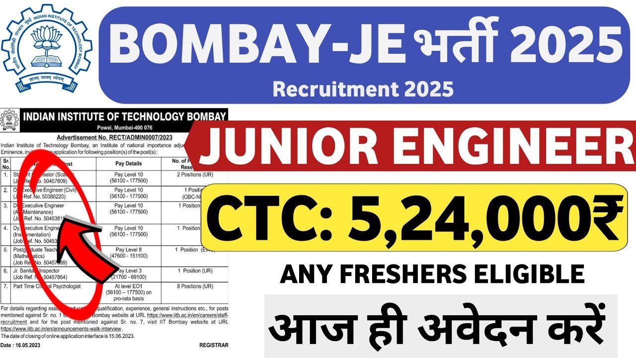 BOMBAY JUNIOR ENGINEER RECRUITMENT 2025 | FRESHERS | Latest Job Vacancy 2025 | Govt Jobs 2025 | Govt